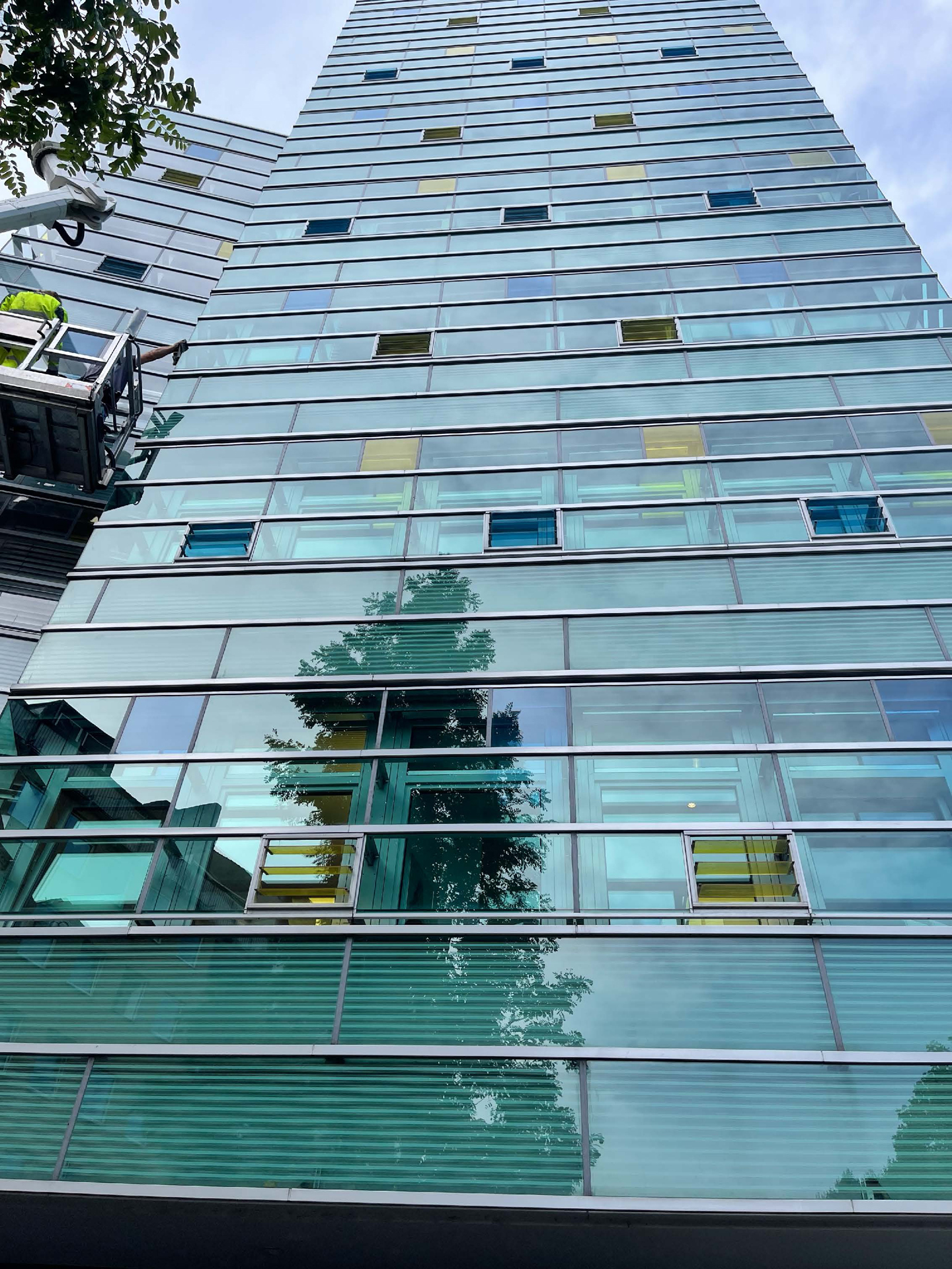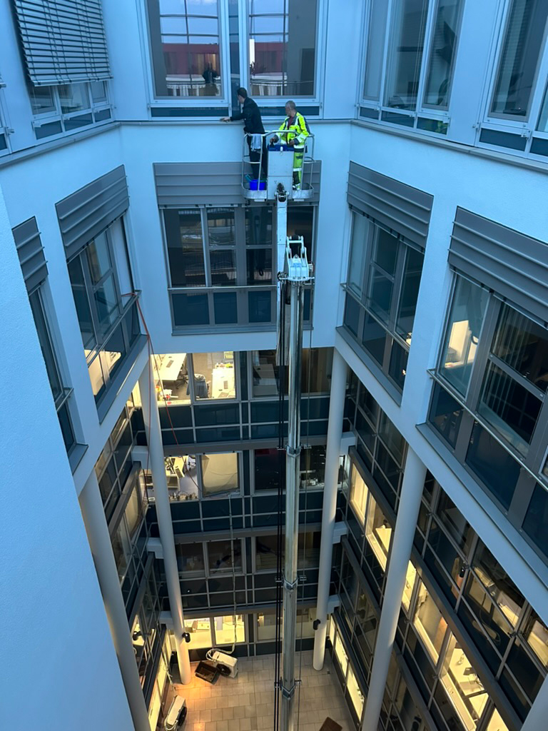 Auch bei schwer erreichbaren Glasoberflächen finden wir eine individuelle Lösung für Sie.